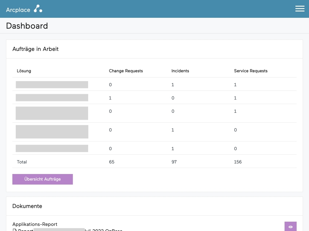 In this module, the Arcplace customer can report any errors (incidents) in a structured manner. The reported errors are automatically transferred to the ERP system and processed there by Arcplace. Any status changes to the reported error are synchronized back to the customer portal and can be viewed there by the customer, so that he is always informed about the current status. In addition to the reported errors, the customer can check the current status of any change requests in the customer portal.