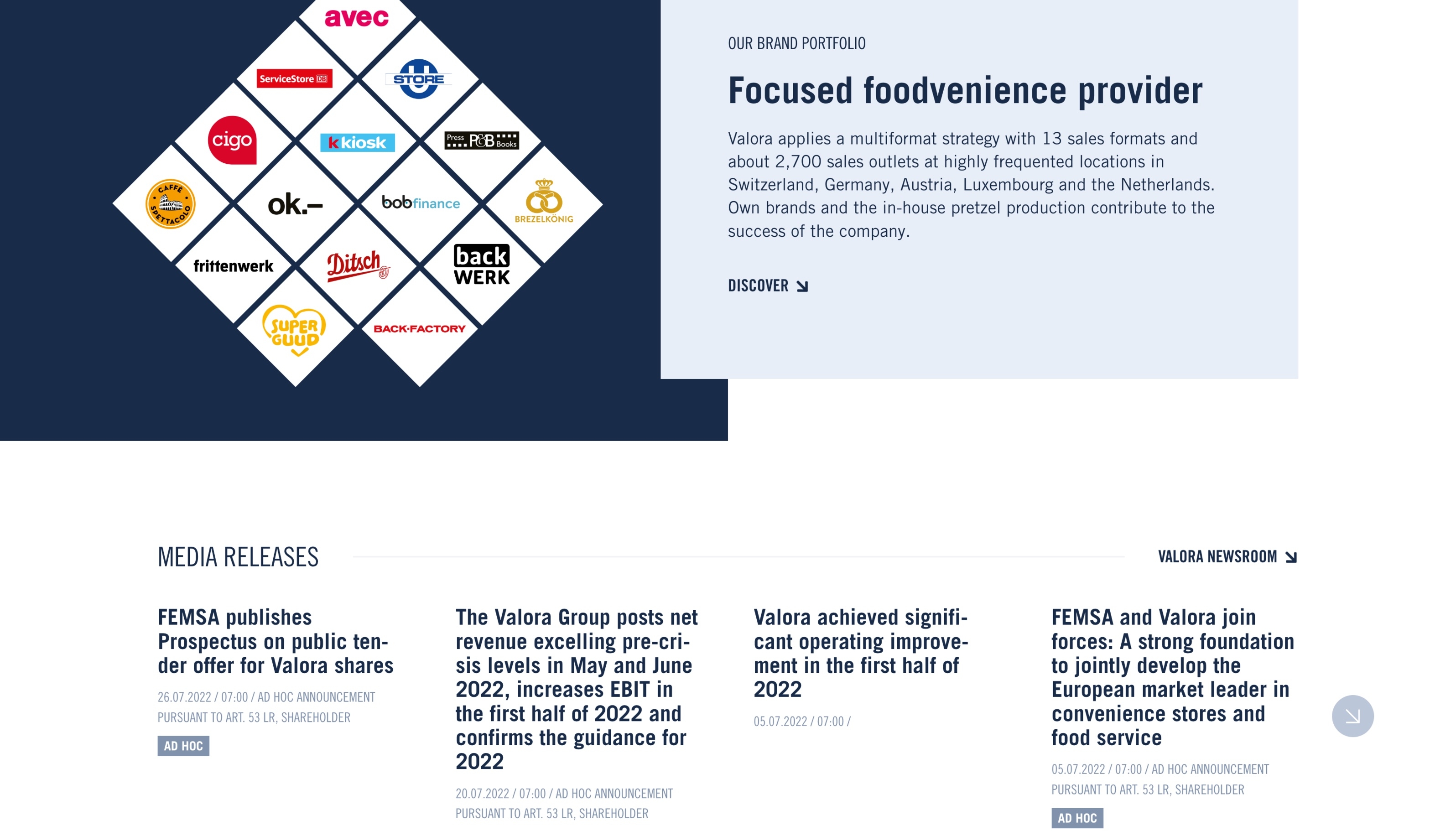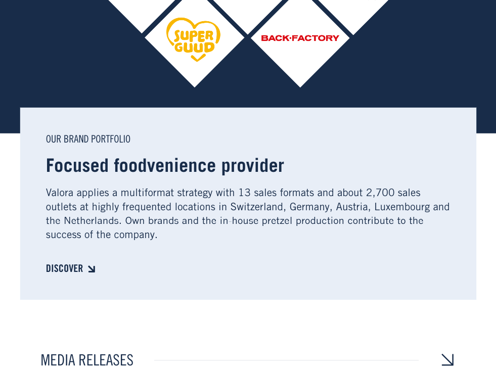 Website of the largest convenience and food service provider in Switzerland
