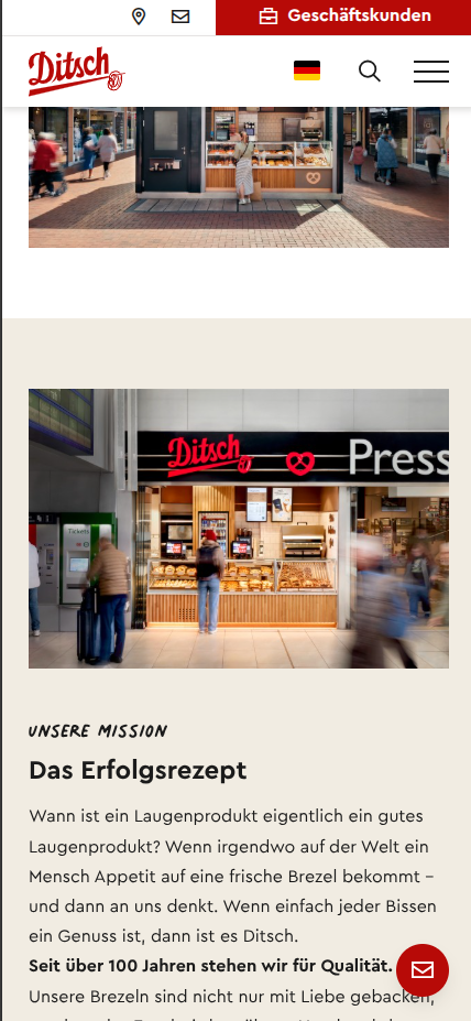 For the established pretzel bakery Ditsch, we created a high-performance B2C website with a focus on scalability, user-friendliness, and international orientation. The goal was to bring together brand content and product world in a technically clean and future-proof solution.