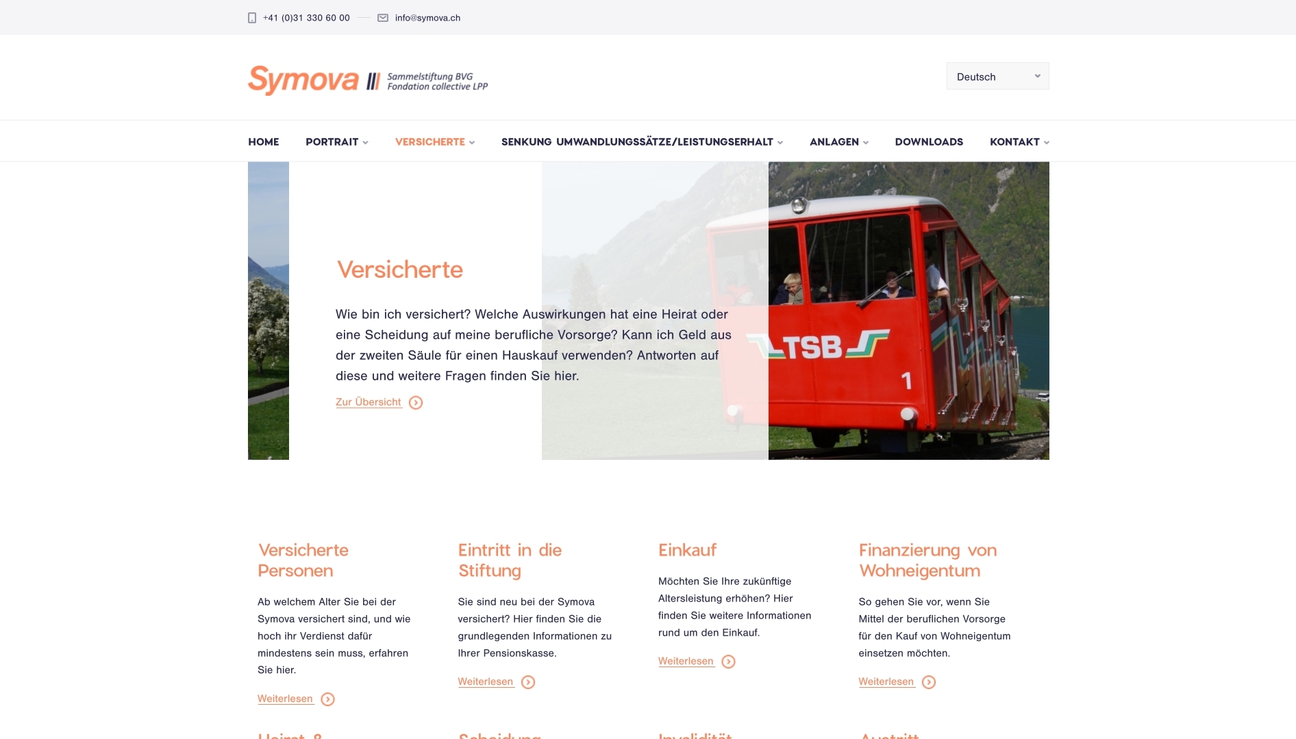 The Symova Collective Foundation is an independent pension fund for medium-sized and small companies. Founded from companies in the public transport and tourism sectors, the Symova Collective Foundation is now available to all companies based in Switzerland. The foundation is strongly committed to the sustainable financing of occupational pensions.